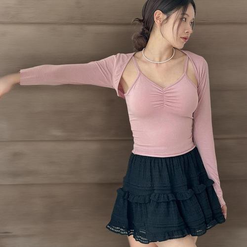[신상오픈런]여성 여름 페스티벌 셔링 슬림 끈탑 볼레로 세트 (36195371)