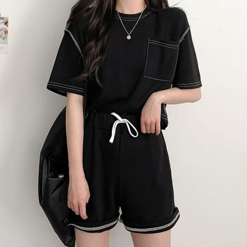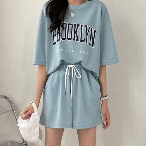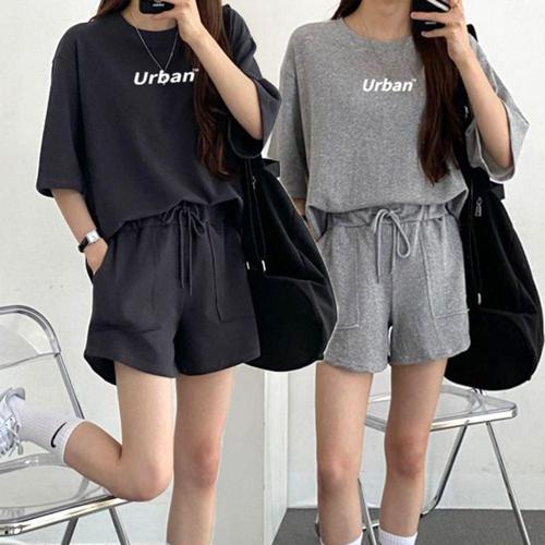 여름 여성 편한 캐주얼 반팔 반바지 트레이닝 세트 WE81CFB