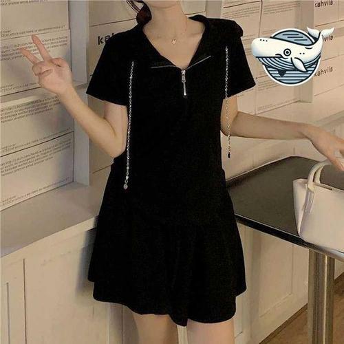 [에이치플러스몰]여름 루즈핏 반집업 트레이닝 치마바지 세트