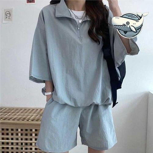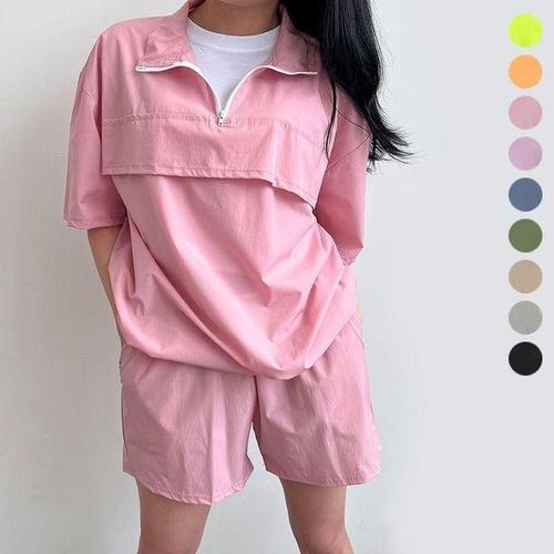 [에이치플러스몰]시원한 여름 반집업 트레이닝 세트 여성 아노락 루즈핏 셋업