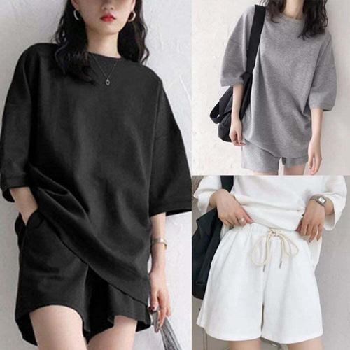 여성 반팔 반바지 트레이닝 세트 여름 운동복 츄리닝 셋업