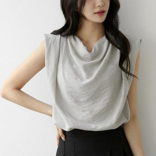 [신상오픈런]여성 오피스룩 모달 드레이프 민소매 여름 블라우스 (39079540)