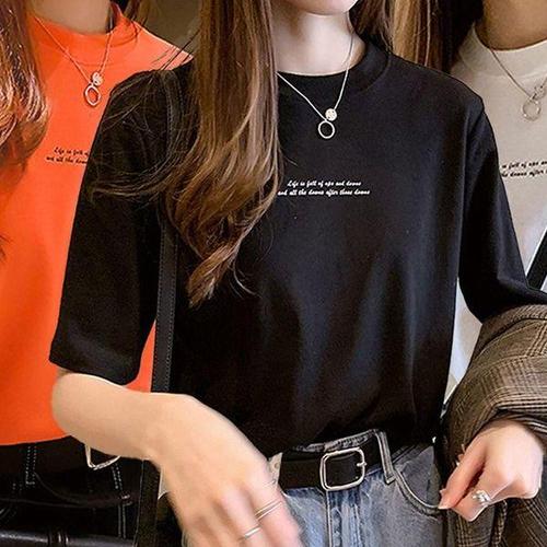 [에이치플러스몰]셔츠 티 여자 레터링 반팔 여성 여름 기본