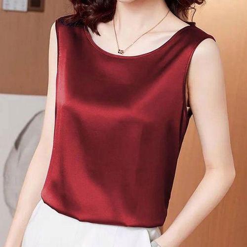 [에이치플러스몰]여름 여성 나시 새틴 블라우스 실키 민소매 고급