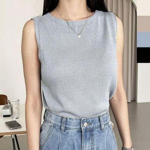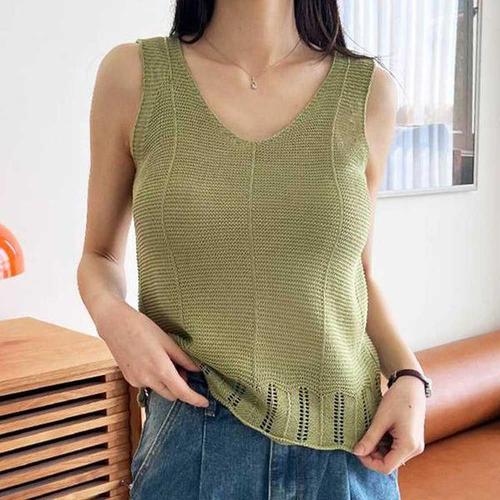 [에이치플러스몰]여성 여름 니트 나시 민소매 티셔츠 브이넥 데일리