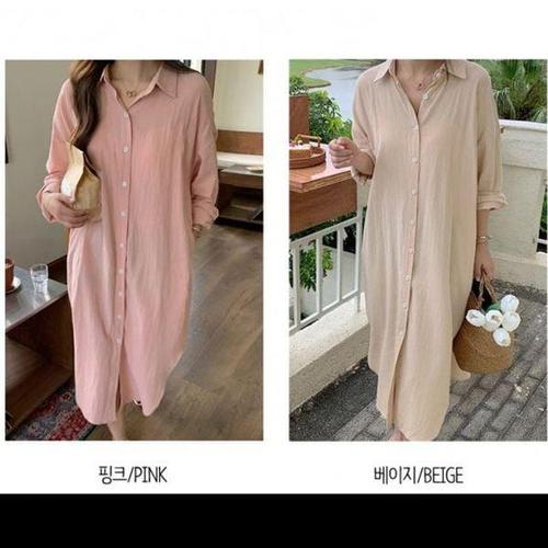 [에이치플러스몰]셔츠 여성 캐주얼 롱 원피스 필수템 봄 가을 여름 옆