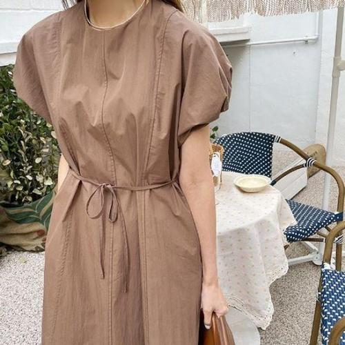 로지 드레프티 여성 반팔 롱 원피스