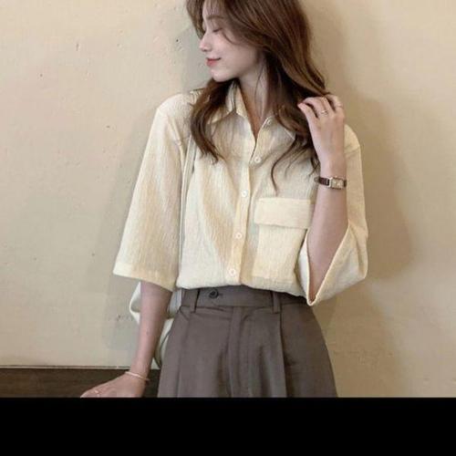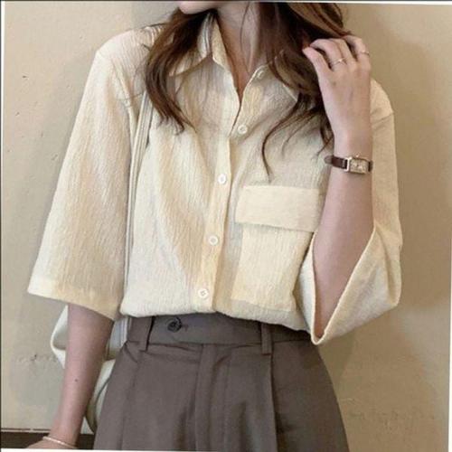 [에이치플러스몰]봄 인기 여성브라우스셔츠 여름 7부 감성 루즈핏 포켓