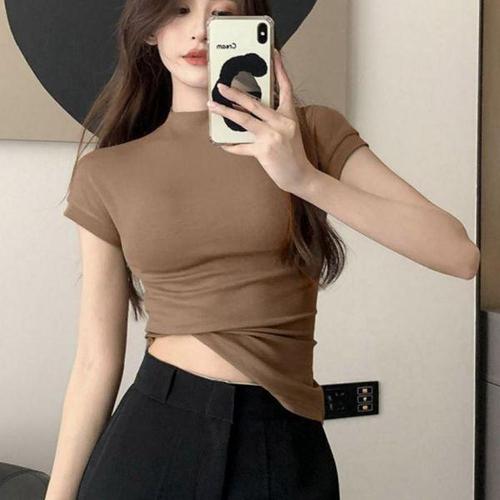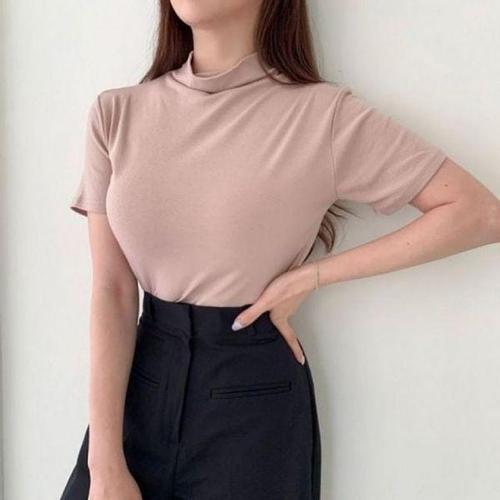 [에이치플러스몰]여름 여성 캐주얼 무지 반목 필수템 폴라 반팔티