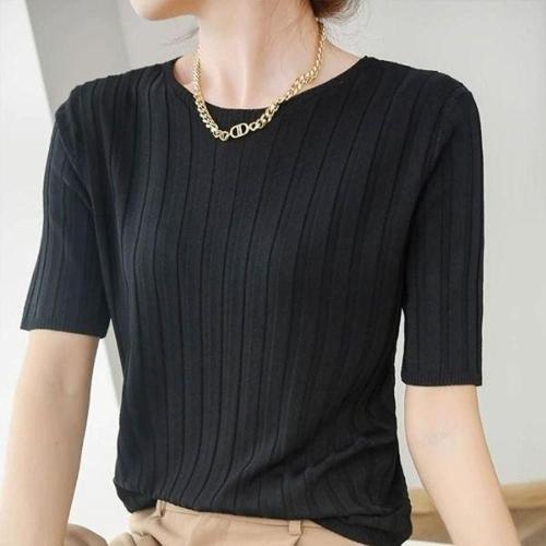 엔젤리크 여성 베이직 반목 반폴라 5부 반팔 니트 니트티 1P