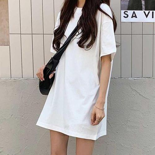 [에이치플러스몰]여자 캐주얼 20대룩 무지 박스티 여름 반팔 숏원피스