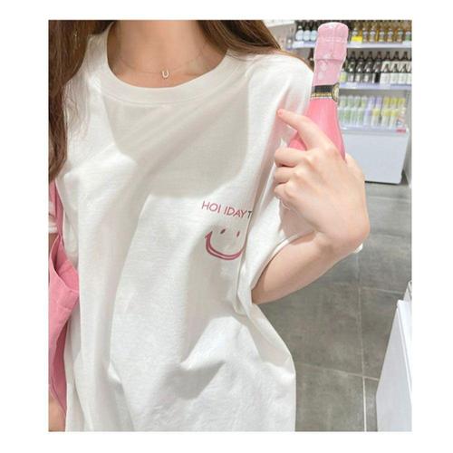 [셀럽하우스]여성 LYGL3237 스마일 여름 캐주얼 반팔 티셔츠 박스티