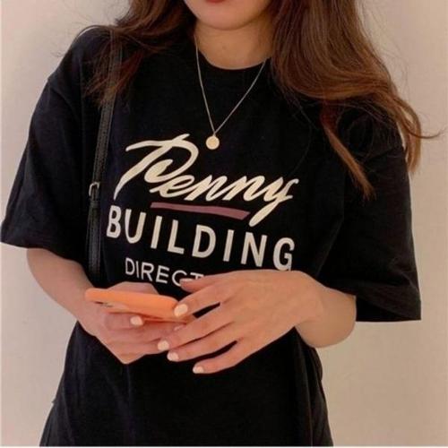 루즈핏 여성티셔츠 레트로 여름박스티 박스 티셔츠 여 WD7DAA7