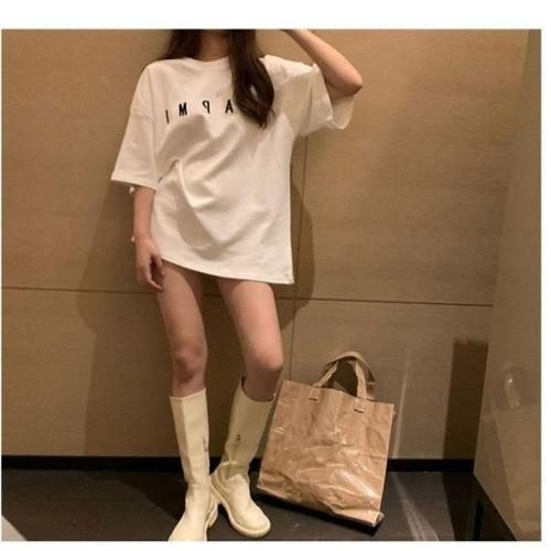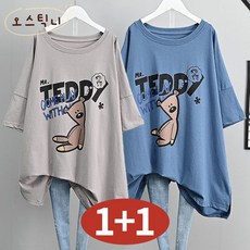 오스틱니 110kg까지 빅사이즈 1+1 특가상품 날씬해보이는 심플 프린트 영문티 미디티 bf 시원한 반팔 티 여름 여성 편한 무지 루즈핏 얇은 박스티 캐주얼 티셔츠세