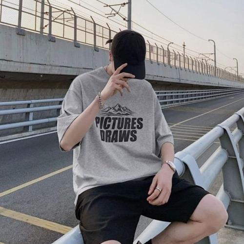 [셀러허브_여성트랜드패션]여름 남자반팔티 남자반팔티셔츠 박스티 오버핏 티셔츠 반팔티 남자 라운드