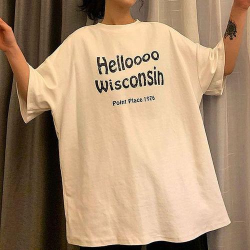 [에이치플러스몰]여자 여름 오버핏 레터링 U넥 반팔 티셔츠 실켓티 빅사이즈 롱티 박스티