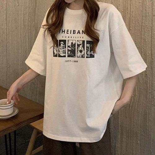 [셀럽하우스]루즈핏 WQTM7482 여성티셔츠 레트로 여름박스티 박스 티셔츠 여