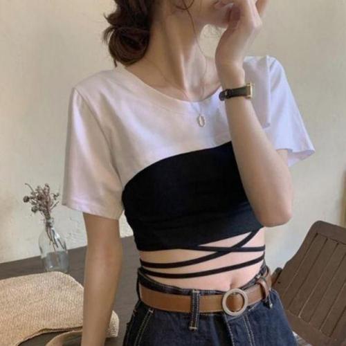 [에이치플러스몰]레이어드 크롭 티셔츠 여름 여자 핫크롭 루즈핏 반팔 박스티