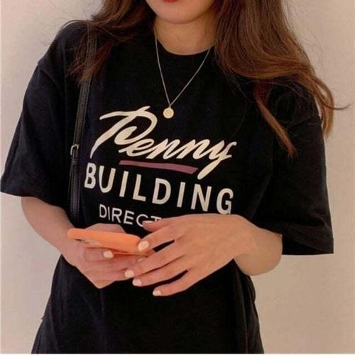 [셀럽하우스]티셔츠 SKWF6525 여름박스티 레트로 페니빌딩 루즈핏반팔 박스