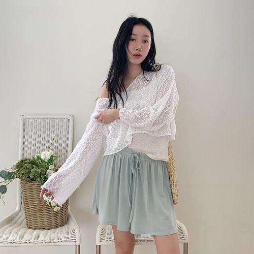 엘케이트 여자 반바지 트레이닝복 여름 와이드 핀턱 숏팬츠 LJJ022