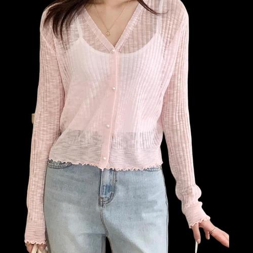 [옷자락] 여자 시스루 숏 여름 심플 니트 가디건