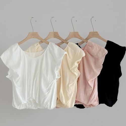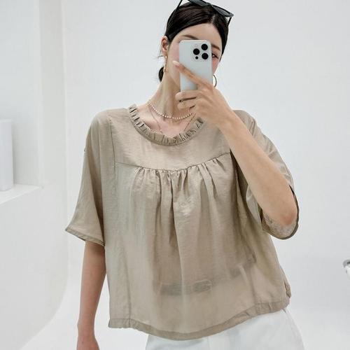 [신상오픈런]여성 프릴 라운드넥 셔링 시스루 여름 블라우스 (39181248)