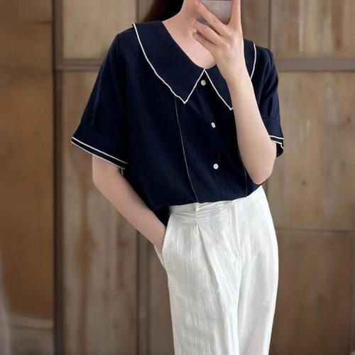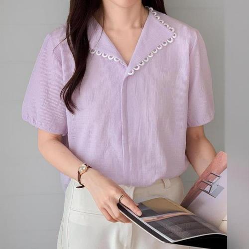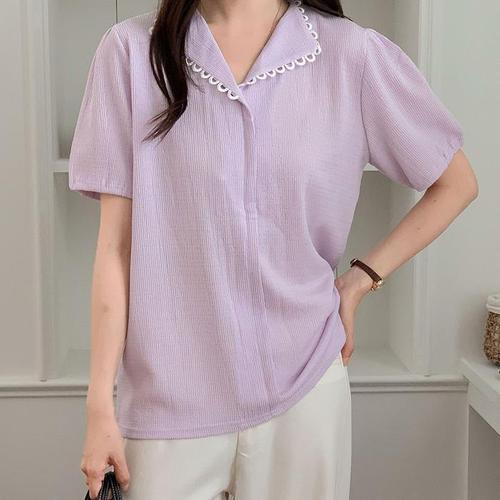 [신상오픈런]여성 여름 하객 패션 라인 카라 블라우스 빅사이즈 반팔 (39139313)