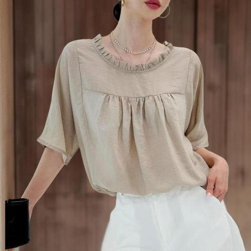 [신상오픈런]여성용 여름 레이온 주름넥 루즈핏 반팔 블라우스 (37713117)