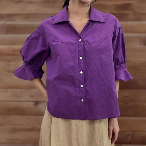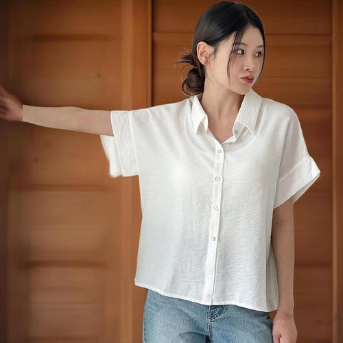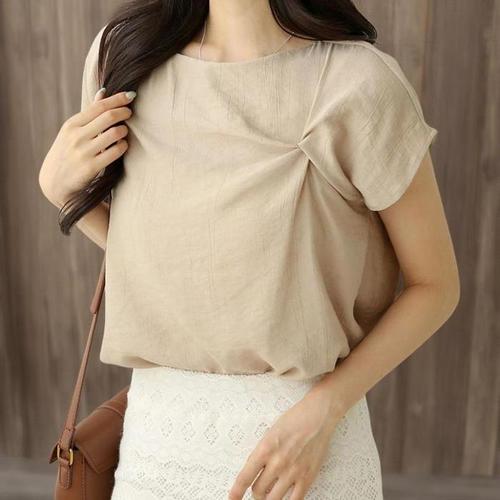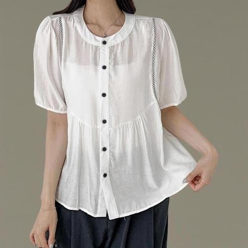 [신상오픈런]여성 면혼합 절개 루즈핏 여름 반팔 블라우스 (33265402)