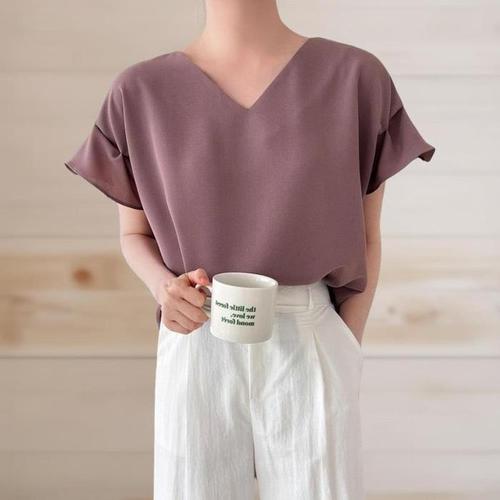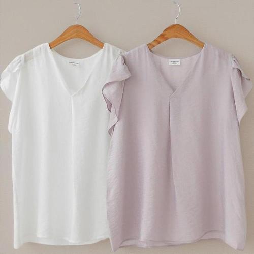 [신상오픈런]여성 여름 하객룩 프릴 소매 브이넥 슬릿 블라우스 (38292748)