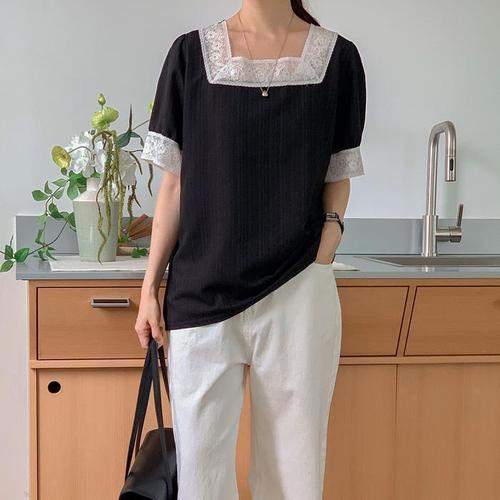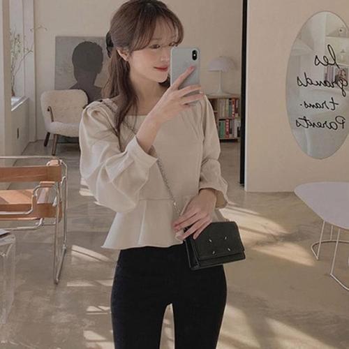 [신상오픈런]페플럼블라우스 스퀘어넥 세미크롭 봄여름 플레어 (30546392)