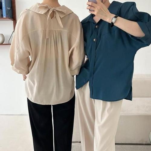[신상오픈런]통소매 봄여름 코쿤핏 백리본 루즈핏셔츠 찰랑블라우스 (30121478)