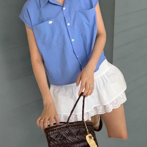 [신상오픈런]여성용 파스텔 컬러 포켓 민소매 벨트 버튼 여름 블라우스 (38767878)