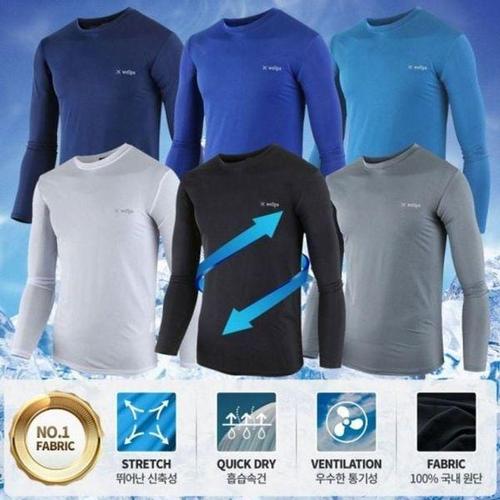꽃중년 여름 쿨티 아이스 쿨링 긴팔 쿨맥스 라운드 골프 이너웨어 등산복 상의 노가다 작업복 빅사이즈