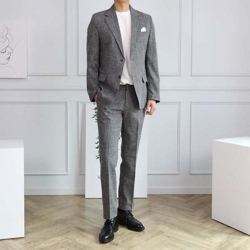 [트루젠]남자 여름 쿨터치 울혼방 기본 그레이체크 비지니스 캐주얼 정장 세트 데일리면접예복