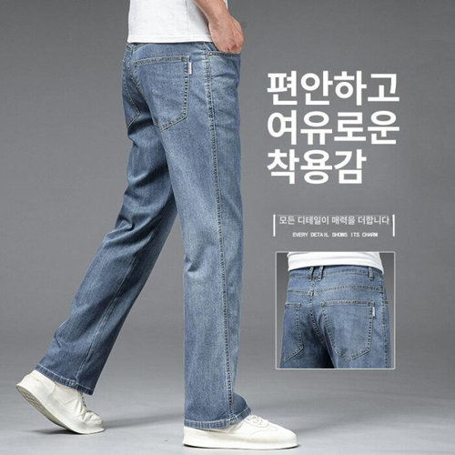 남자 청바지 봄 여름 스판 구김없는 중년 남성 일자 진청 흑청 데님 바지 작업복 아빠옷 빅사이즈 30~40