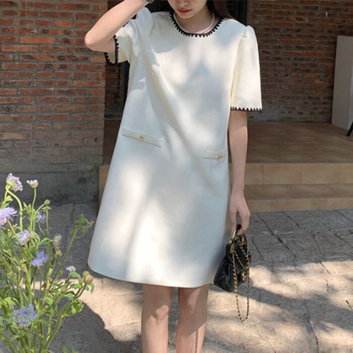 여름 A라인 미니 반팔 원피스 배색카라 여자 하객룩