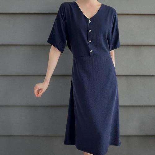 [신상오픈런]여성 여름 하객 원피스 브이넥 버튼 뒷리본 빅사이즈 롱드레스 (38631795)