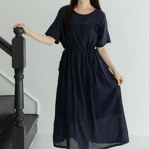 슈팅스타 / 허리 스트랩 여름 하객룩 오피스룩 롱 반팔 원피스