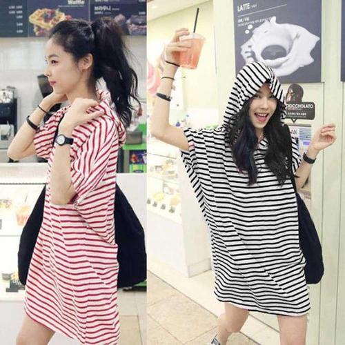 [모노무드]모노무드 JE-73085 스트라이프 여성 캐주얼 후드 원피스 필수템 여름 롱