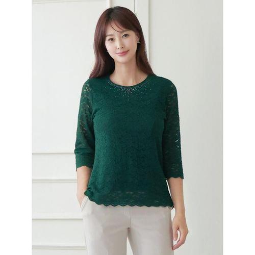 [드리다]엄마옷 여성 봄 여름 랏셀 레이스 핫픽스 빅사이즈 7부 티셔츠 50-60대 중년여성 마담옷 하객 ..