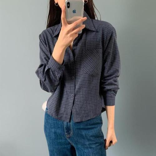 [신상오픈런]여성용 체크 패턴 간절기 면 셔츠 기본핏 가을용 포켓 블라우스 (41571161)
