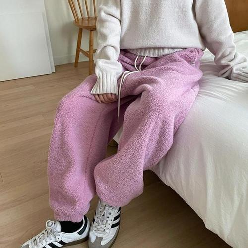 [신상오픈런]뽀글이 겨울 플리스 와이드 여성 하늘색 덤블팬츠 (28831041)