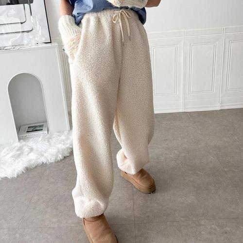 [신상오픈런]여성 빅사이즈 겨울 허리끈 플리스 뽀글이 와이드팬츠 (28831042)