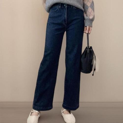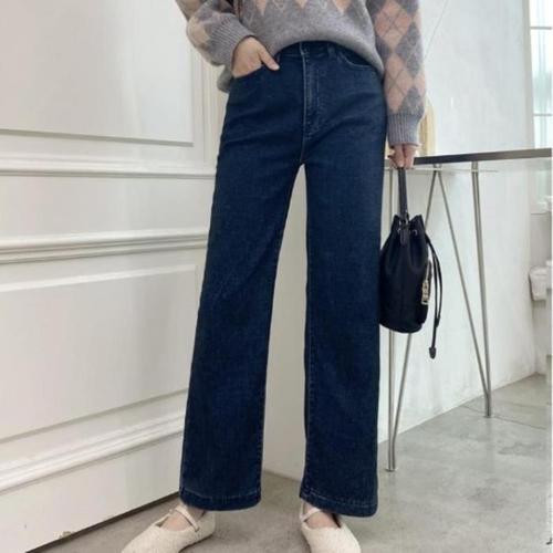 [신상오픈런]여성 겨울용 도톰 스판 세미와이드 밍크 청바지 데님 (42614629)