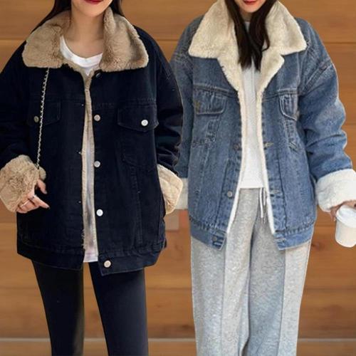 [신상오픈런]여성 루즈핏 캐주얼 데님 안감 퍼 겨울 자켓