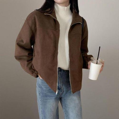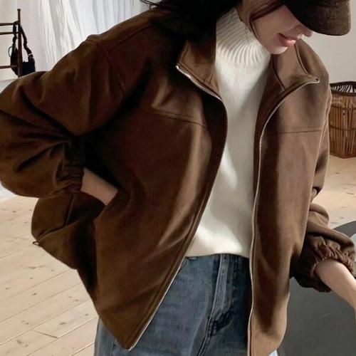 [디자이너몰]여성 겨울 데일리 누빔 스웨이드 집업 자켓