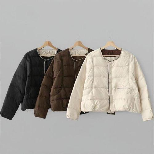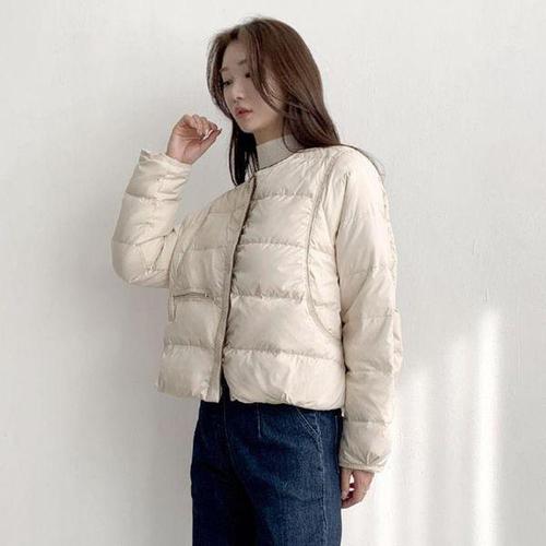 [신상오픈런]여성 노카라 겨울 오리털 포켓 버튼 스트링 패딩 자켓