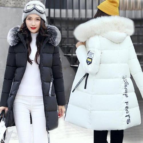 겨울 따뜻한 모피 칼라 후드 여성 파카 패션 편안한 지퍼 포켓 디자인 롱 자켓 우아한 슬림 두꺼운 여성 코트