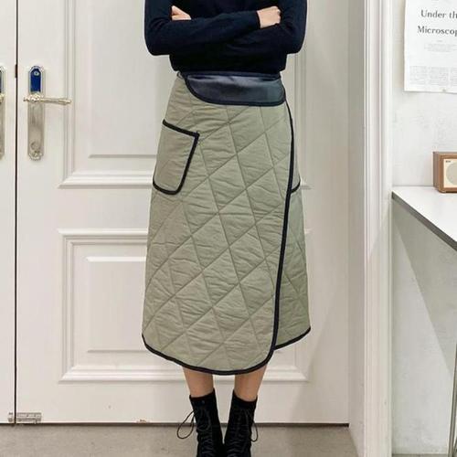 [신상오픈런]패딩스커트 겨울 에이라인 배색 엣지 포켓 랩치마 (28560176)